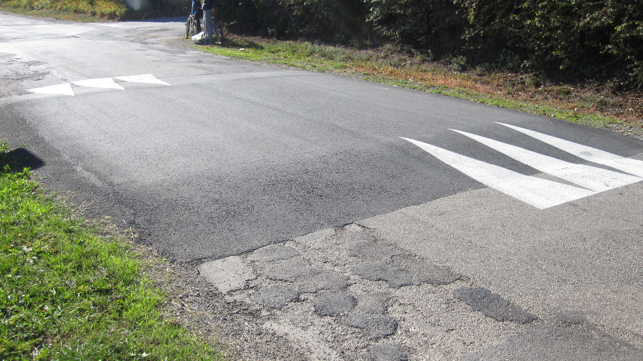 A votre avis, pour quelle(s) raison(s) les deux dos d’âne aperçus sur les photos ci-après ont ils été installés dans une rue en aussi piteux état et aussi remplie de nids-de-poules que celle-ci ?